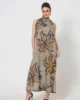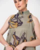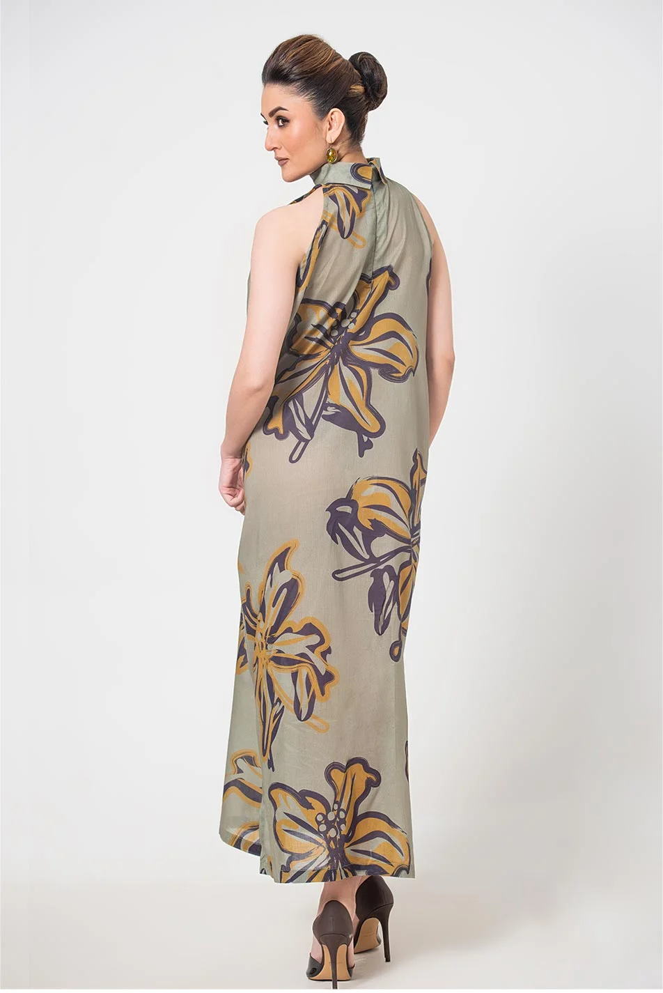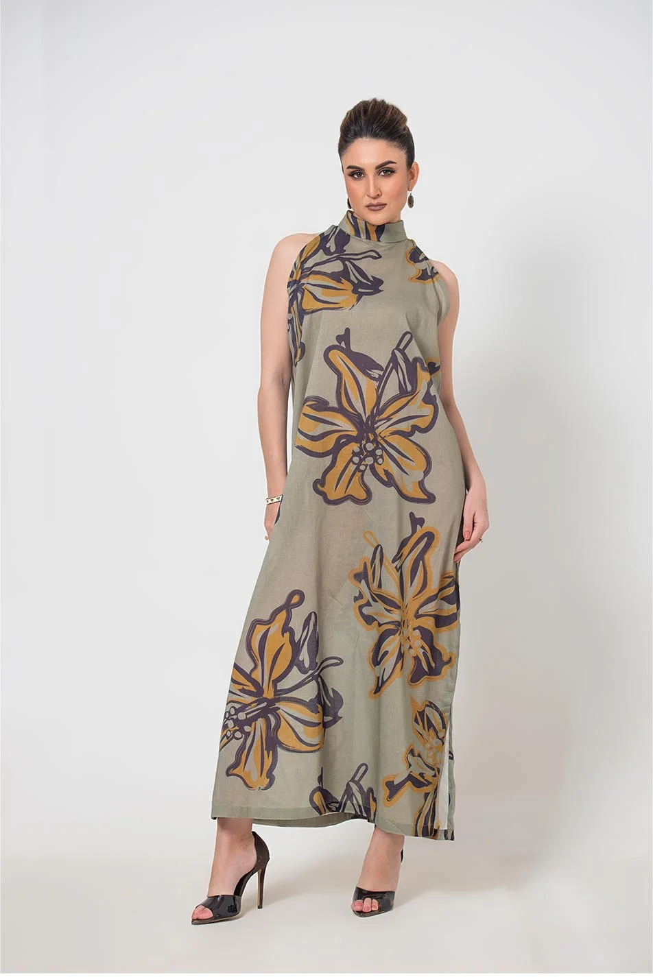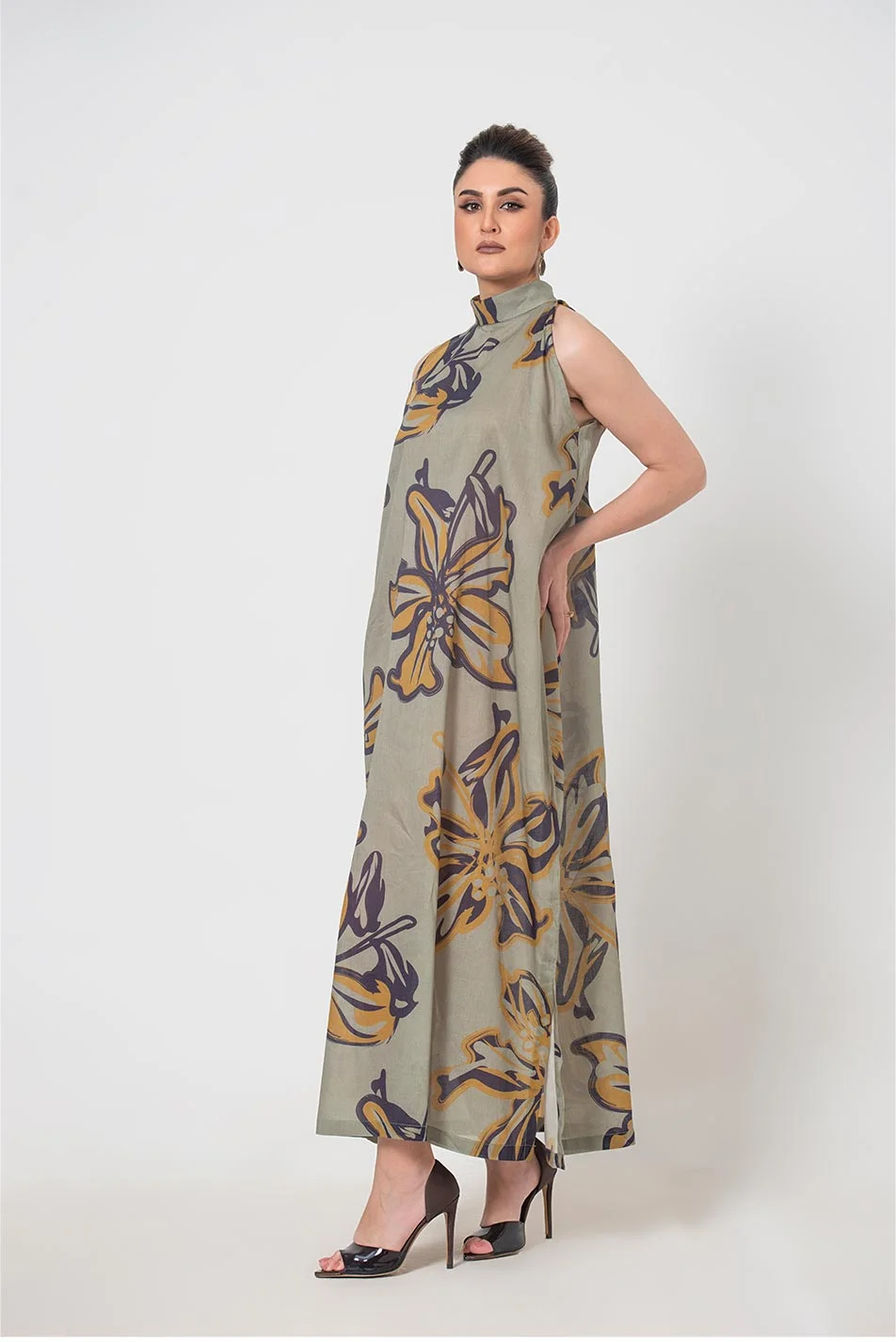 This shirt combines a soft cotton feel with a bold print of yellow and purple flowers for a striking look. Featuring a simple straight cut, sleeveless design, and a side slit near the bottom, it’s perfect for a breezy, stylish ensemble with a touch of floral flair.