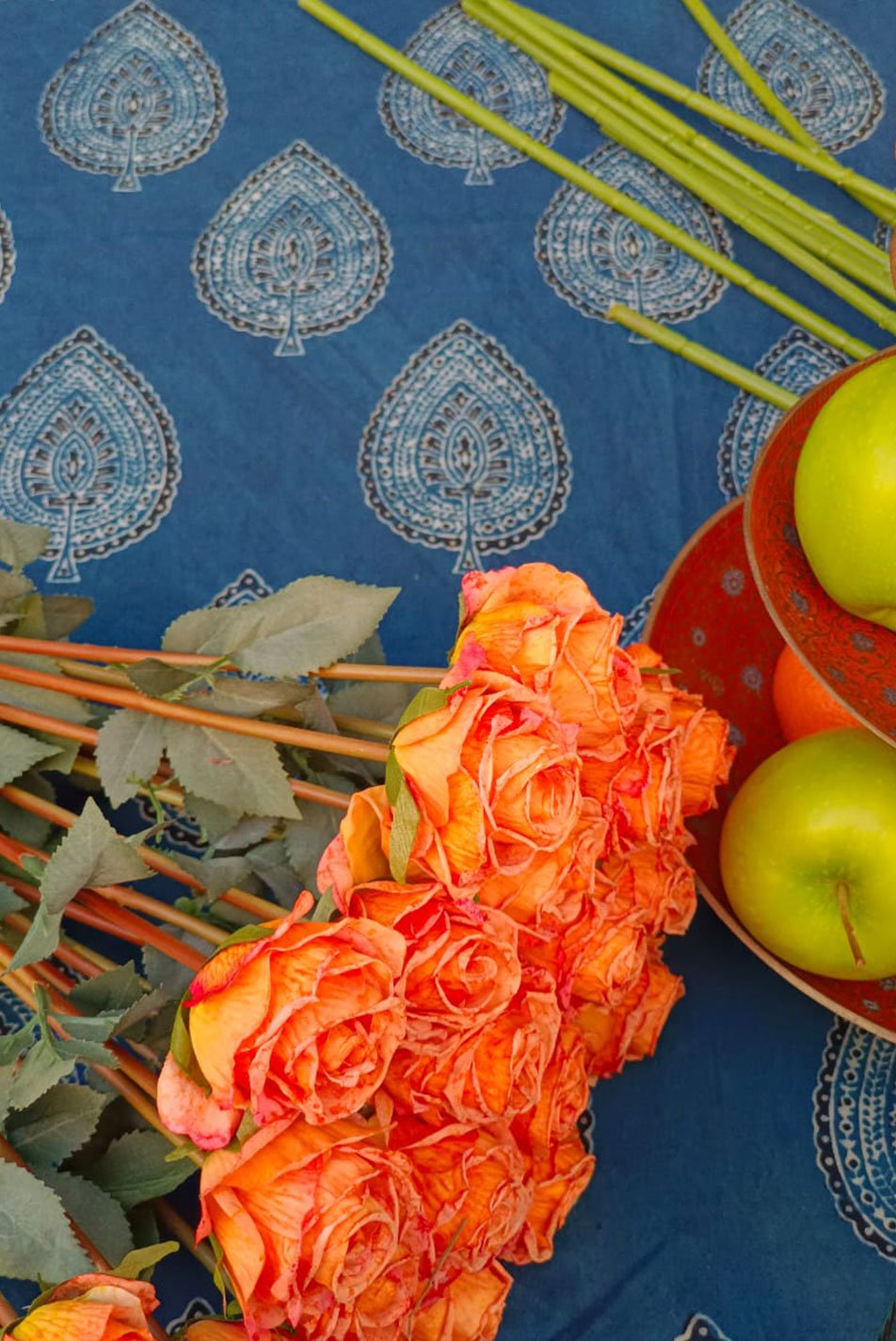 A deep blue hand-dyed table cover is more than just a piece of fabric—it’s a work of art, a statement of tradition, and a celebration of craftsmanship. Its rich, oceanic hues and organic texture bring a sense of depth and sophistication to any dining space, making it a perfect blend of heritage and modern luxury.
