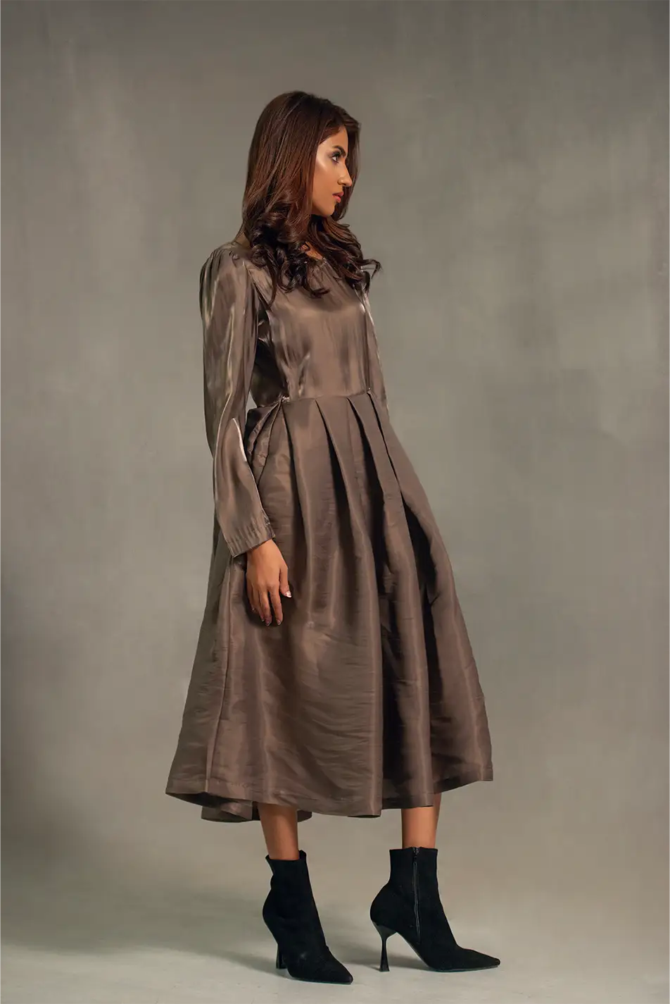 It has Tailored bodice ,moderate pleats which has movement with intention. Matilda dress feels educated, refined, and resilient.
