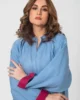 Designed with a sleek low collar and front neck slit, this shirt offers a refined yet relaxed look. The side slits on the sleeves and lower border, accented with maroon underlining, add a unique pop of color and movement. Perfectly combining modern style with subtle detailing, this shirt is ideal for those seeking effortless sophistication with a touch of contrast.