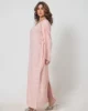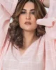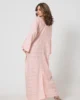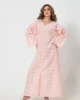 The broad V- neckline, both front and back, creates a flattering silhouette, while the loose, dolman-style sleeves offer a relaxed fit. Subtle front and back slits near the lower hem add an extra touch of movement. The delicate square self-print and soft pink hue make this shirt a versatile piece for any occasion, combining modern elegance with a casual feel.